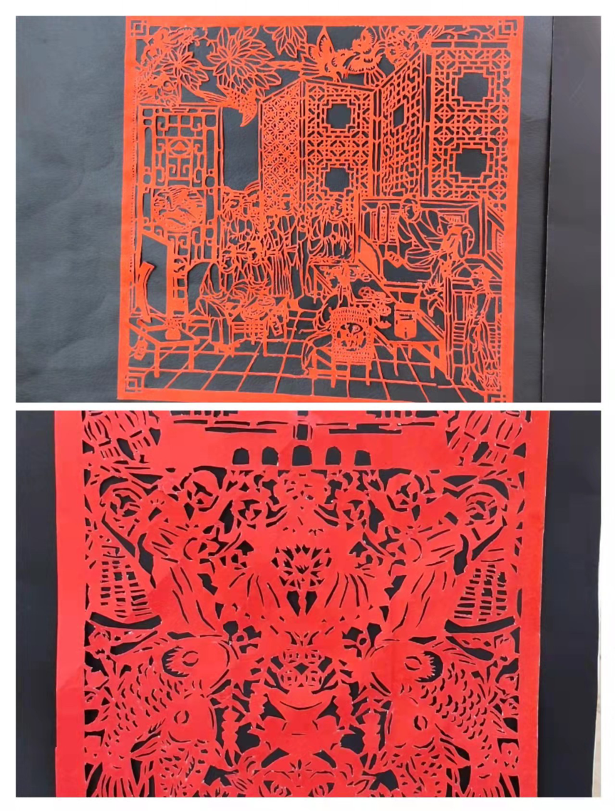 剪纸作品包括剪纸和雕刻两部分,让历史呈现在纸上,给我们的带来了艺术的温暖,同时,展示学校传承非遗、树立文化自信的成果,让非遗在学校绽放异彩。