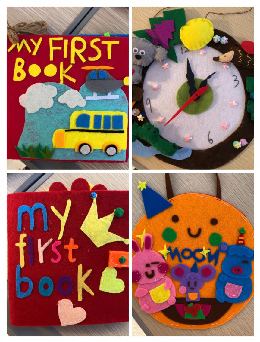 对手工制作爱好者来说,不织布是比较熟悉的产品,它是英译名,是“毛毡”之意。它具有纸的特性,柔软、透气、环保,是新型纤维制品,具有棉质的感觉,造价便宜。这次展出的不织布作品,是以绘本的形式制作成的安静书,均为育中学子平时上课所制作的优秀作品,是学生学习技能的成果展示,更体现了学生优秀的创造力。