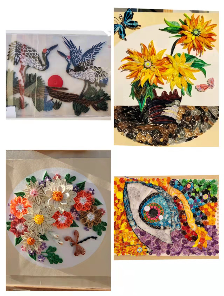 衍纸画是一种美丽、简单而实用的工艺品,衍生纸画,潮流新品。它的材料简单、简洁,只有彩色纸条。运用卷、捏、拼贴组合,在构思好的作品台面上完成。展示会上展出了学生创作的衍纸精品,走进衍纸世界,感受妙“纸”生花的奇思妙想。