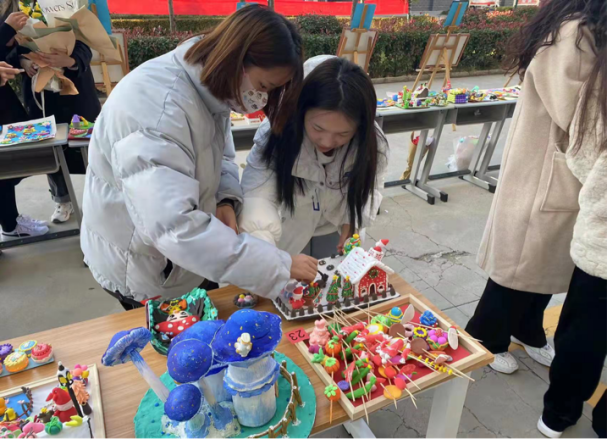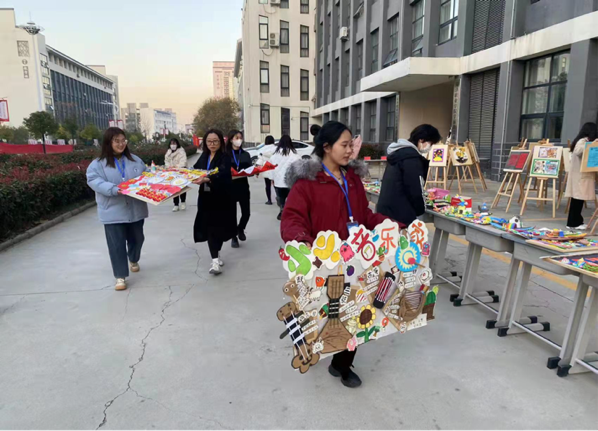 为培养学生创新意识和动手能力,展现育中学子积极向上的精神风貌,促进育中教育学院的发展,让更多人了解和感受环创艺术的魅力,2021年12月2日,育中教育学院党总支在五号教学楼前,举办了首届“2020级学生环创及手工作品展暨幼儿园环创产品推介展示会”,几百幅作品参展。这次活动的主题是“育中环创产品,幼儿园的资源库”;目标是“让学生的作品成为第一生产力”;目的是“用智能研发为幼儿园服务,让作品成为产品”。