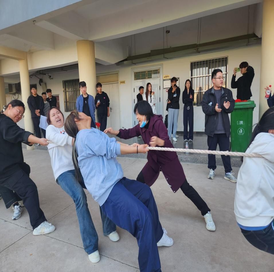 比赛现场,各院系的参赛队伍整齐列队,同学们个个精神抖擞,斗志昂扬。他们脸上洋溢着自信的笑容,展现出了菏职学子的青春活力。随着比赛哨声的响起,拔河比赛正式开始。参赛队员们双手紧握长绳,双脚用力蹬地,身体向后倾斜,使出浑身解数拼命往后拉。“一二,一二!”的口号声此起彼伏,响彻整个校园。老师们也纷纷加入到加油助威的队伍中,为同学们加油鼓劲。