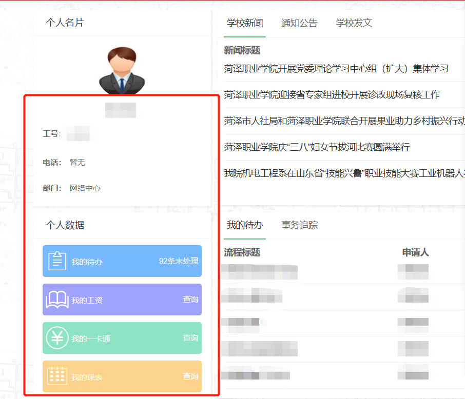 使用新密码登录信息门户。登录成功后,页面如下图所示,可以看到自己的工号等信息。