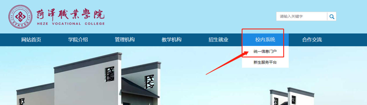 点击导航栏“校内系统”下拉菜单中“统一信息门户”